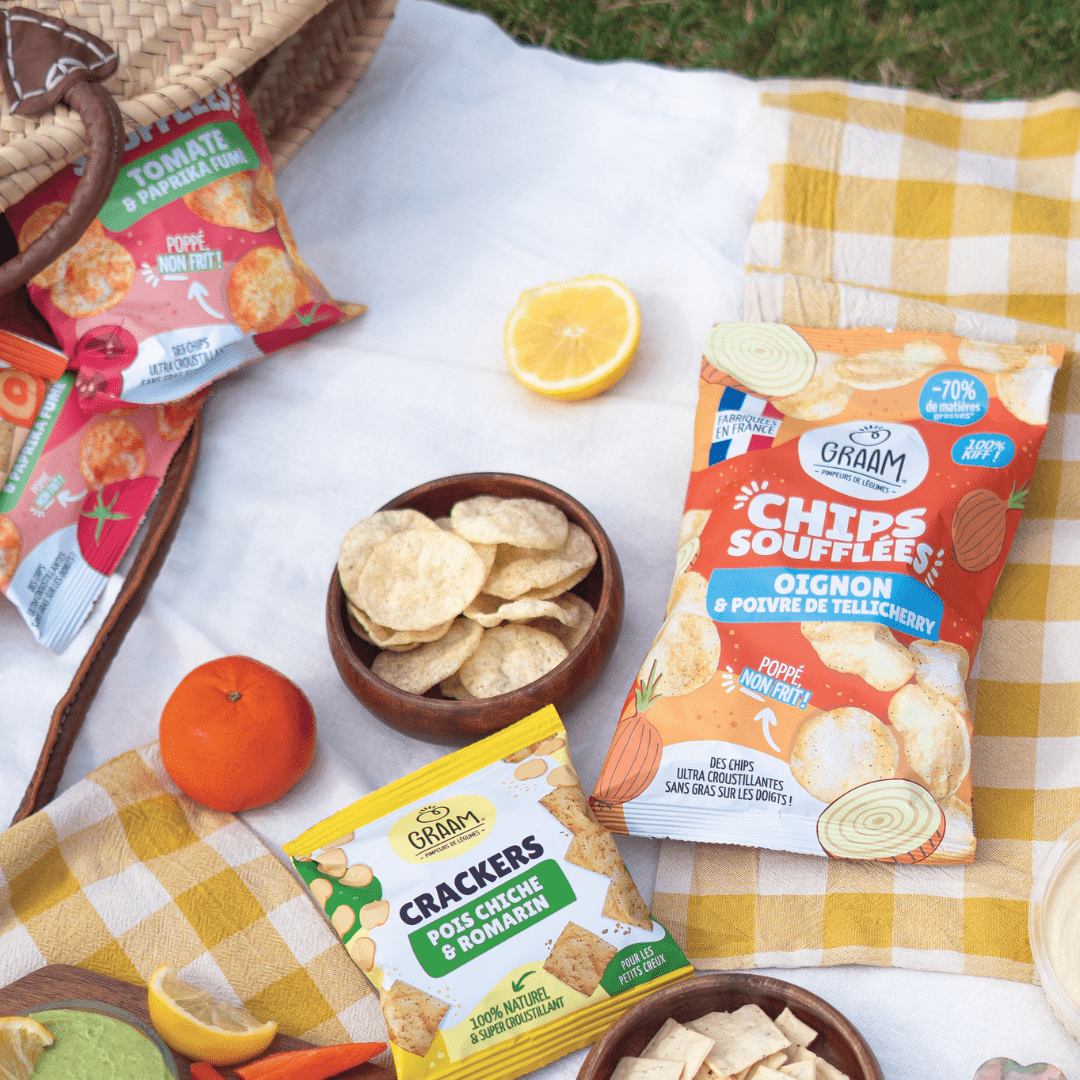 Fabriquées en France, avec -70% de matières grasses* pour 100% de kiff et 0% de culpabilité ! En bonus, zéro gras sur les doigts. Alors, prêt à souffler un vent de kiff dans vos apéros pimpés ?
