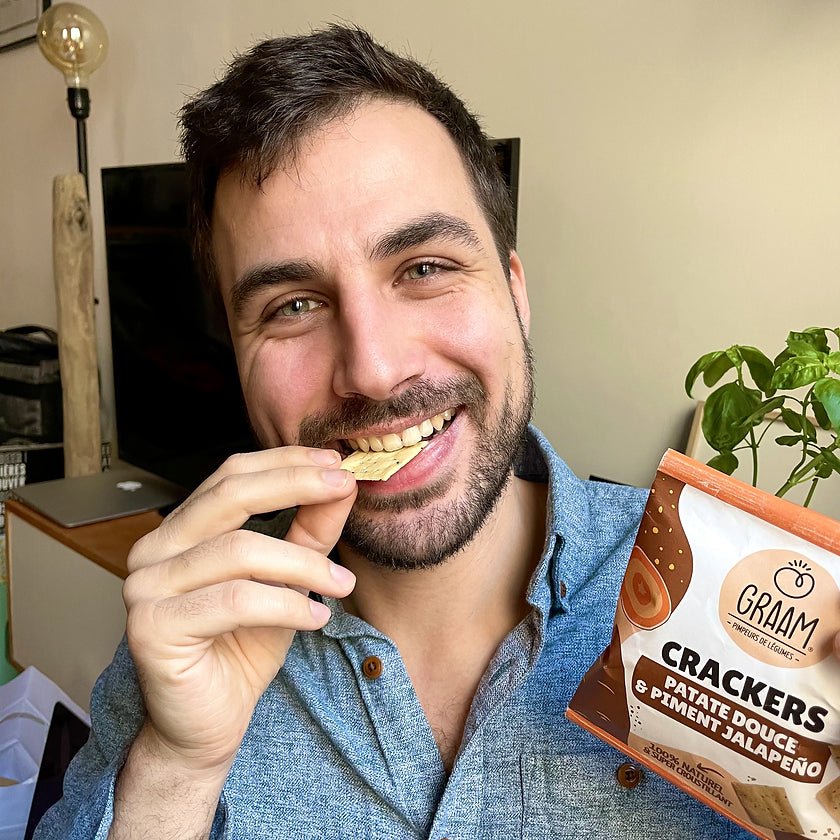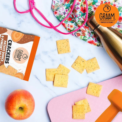 Mini format, maxi kiff ! Nos crackers aux légumes pimpent toutes vos pauses ! Sans gluten, cuits au four et 100% naturels, ils sont l'allié parfait pour un petit creux ou un déjà sur le pouce. À croquer ou à tremper dans vos tartinables préférés, ils transforment chaque pause en un canon instantané. Alors, prêt à craquer et à faire croustiller vos pauses ?